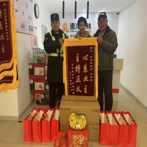 你用心地服務(wù)? 我真誠(chéng)地感謝? ? ? 昨日,業(yè)主王先生送來一面錦旗,還送來了牛奶、水果等慰問品,真誠(chéng)地感謝夜班保安員劉松波同志的用心服務(wù)。? ? ?保安員的根本宗旨,就是全心全意