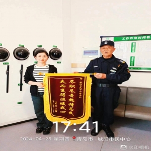 服務(wù)好不好 口碑最重要4月23日,秦女士到市民中心三樓辦理業(yè)務(wù),不慎將背包丟失,包內(nèi)各類證件,鑰匙、銀行卡及現(xiàn)金,安保隊(duì)長(zhǎng)高豐艷在巡邏過程中撿到,于24日將丟失物品歸還給秦女士,25日下午秦女士專程送來錦旗對(duì)市民中心安保人員的高尚品德表示