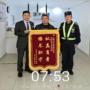 巡邏不僅僅是“打點(diǎn)”5月1日晚21:30分左右,秩序部巡邏員劉松波巡查地下車庫時(shí),發(fā)現(xiàn)452號(hào)車主車窗未關(guān),上前檢查發(fā)現(xiàn),車?yán)锊o人員且車座上留下了類似貴重物品,該巡邏員立即撥打了車主電話,并在車旁等候,直到車主趕到才離開。幾天以后,該業(yè)主送來了一面